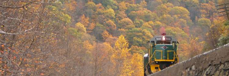 Trips on The Stourbridge Line depart from Honesdale and Hawley. For a short-but-sweet outing, leaf-peepers can take the Pocono Foliage Express, a 20-mile ride between Honesdale and Hawley. They can also make the hour-long ride on the Glen Eyre Foliage Express, or join the two-hour journey on the Lackawaxen Foliage Express. Visitors can also opt for a more extended fall tour, such as the 2.5-hour hour trip on the Glen Eyre Foliage Limited. An even longer option is the 3.5-hour ride on the Lackawaxen Foliage Limited, which runs along the Lackawaxen River and showcases the remains of the historic Delaware & Hudson Canal.